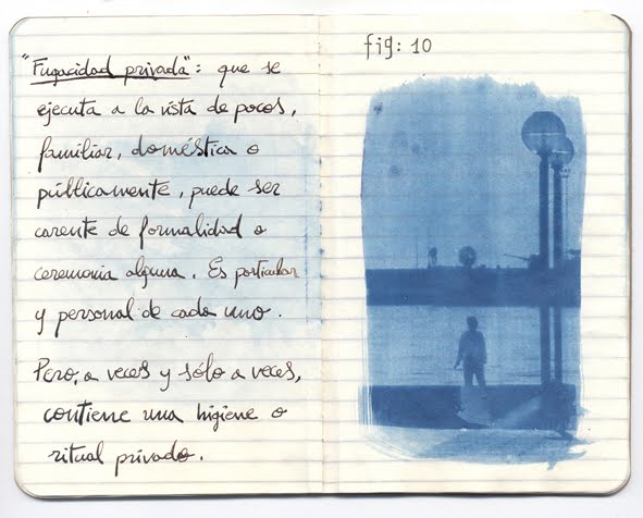 "Cuaderno mojado III", 2006. Cianotipia sobre libreta.